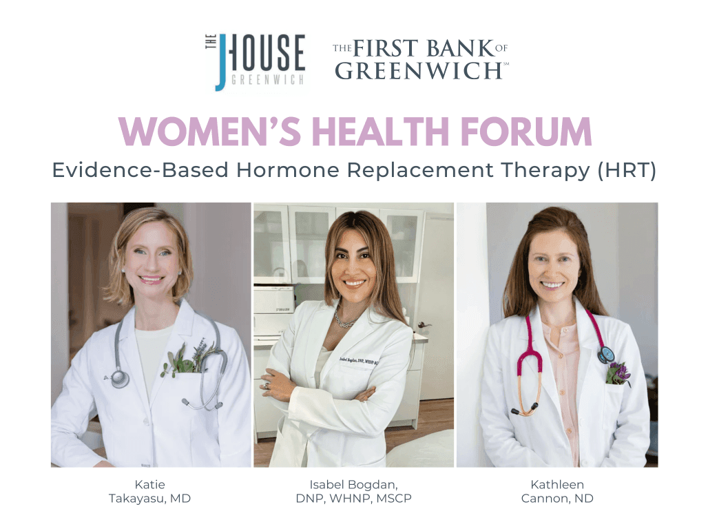 The J House and The First Bank of Greenwich host a panel of women’s health experts to discuss the controversial topic of hormone replacement therapy (HRT).